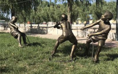 供應小孩拔河雕塑,玻璃鋼拔河比賽雕塑
