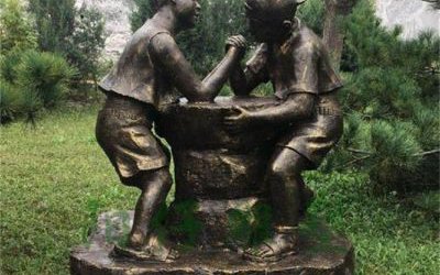 玻璃鋼童趣主題雕塑,兩個小孩掰手腕雕塑